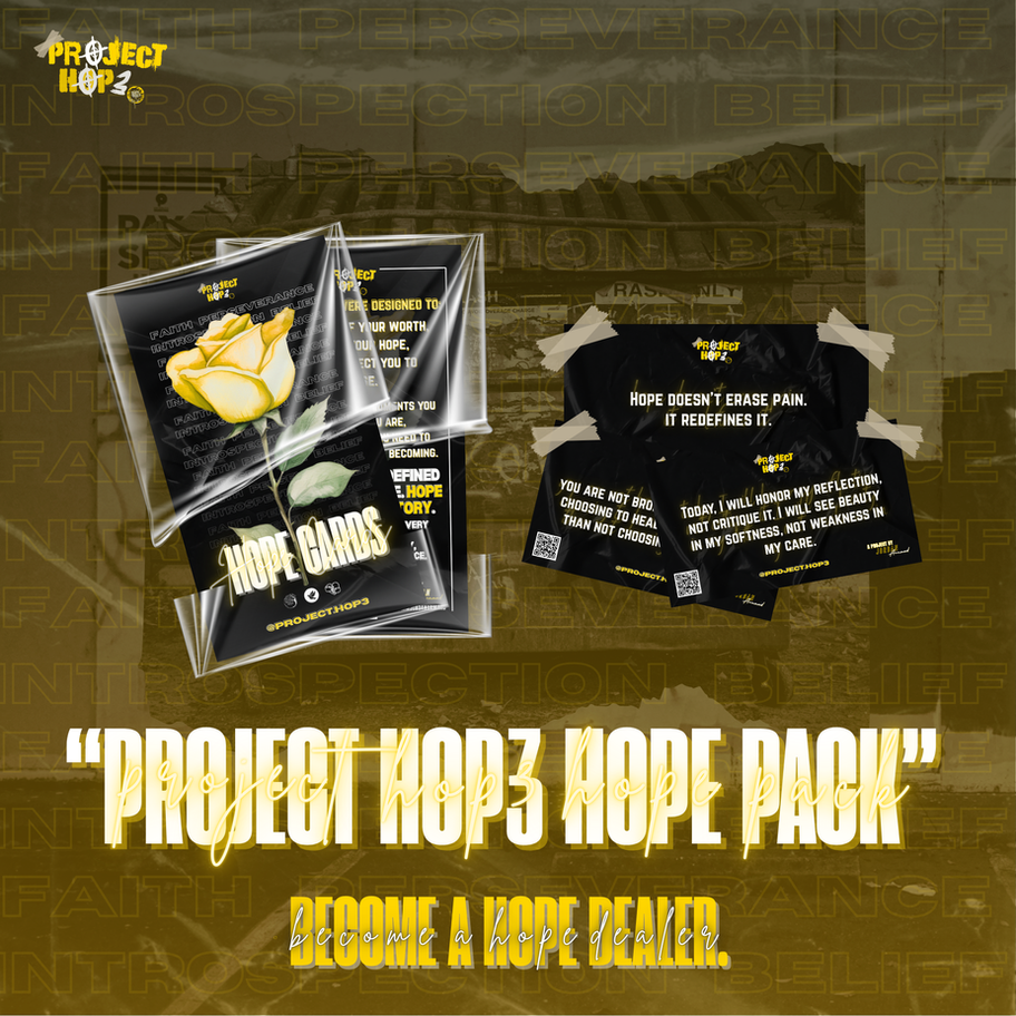 A radiant pack of HOPE affirmation cards centered on resilience, renewal, and the spirit of the rose out the concrete. Each pack contains 53 cards: 50 for you, and 3 gifted to an unhoused person along with their meal. The Hope Pack is designed to offer grounding, clarity, and empowerment to both you and someone who needs it most.